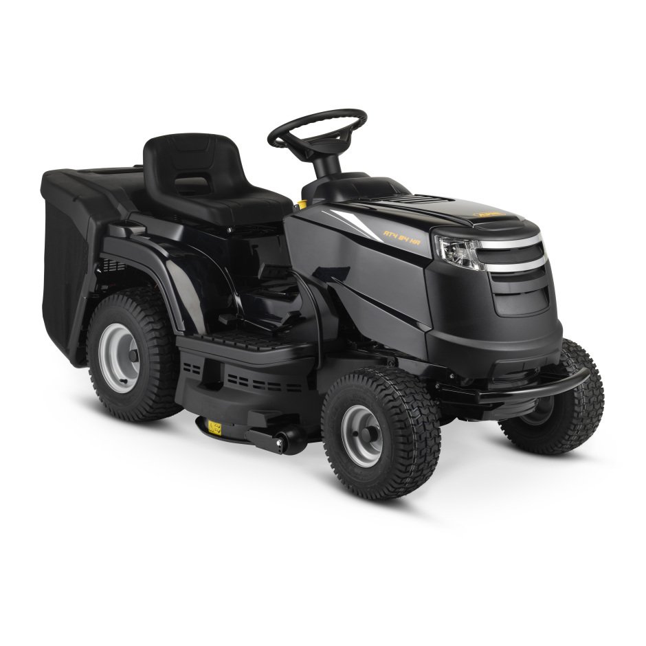 El AT4 84 HA es un tractor de jardín compacto y se caracteriza por su excelente versatilidad y su superior confort de conducción. El tractor de jardín está propulsado por un motor Stiga ST 400 de 1 cilindro y cuatro tiempos de 4 cilindros de 414 cc con una potencia de 6,3 kW a 2400 rpm. El sistema de corte está equipado con una segadora de doble hoja con un ancho de corte de 84 cm, que se puede ajustar centralmente en 7 posiciones, de 25 a 80 mm. Esto te ayudará a encontrar la actitud adecuada para cada situación. El AT4 84 HA tiene una transmisión hidrostática controlada por pedal, una característica deseable que le permite controlar la velocidad de avance como lo haría con un automóvil de transmisión automática, cuanta más presión sobre el pedal, más rápido va.