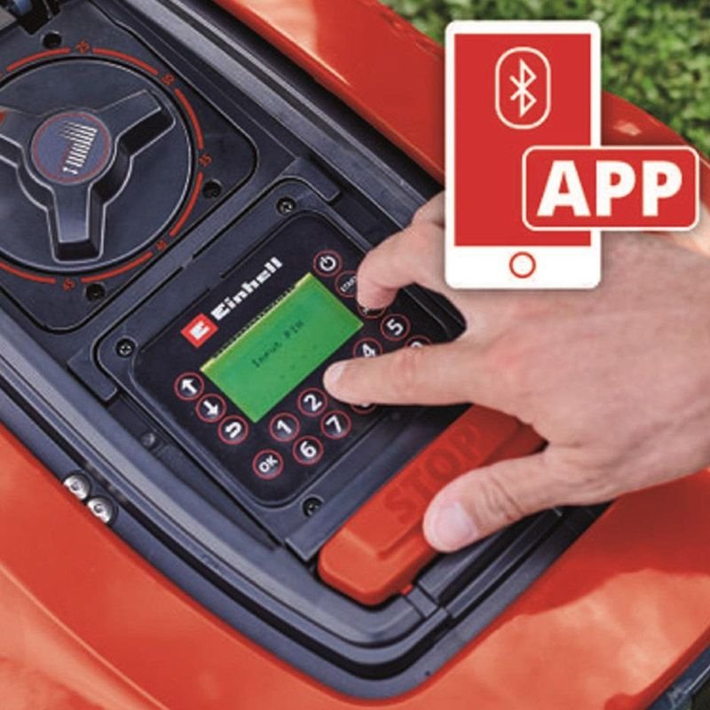 El teclado intuitivo con pantalla LCD permite programar los tiempos de uso del robot cortacésped Einhell FREELEXO con detalles día a día. Protección antirrobo por código PIN y señal de alarma instalada en el robot cortacésped.