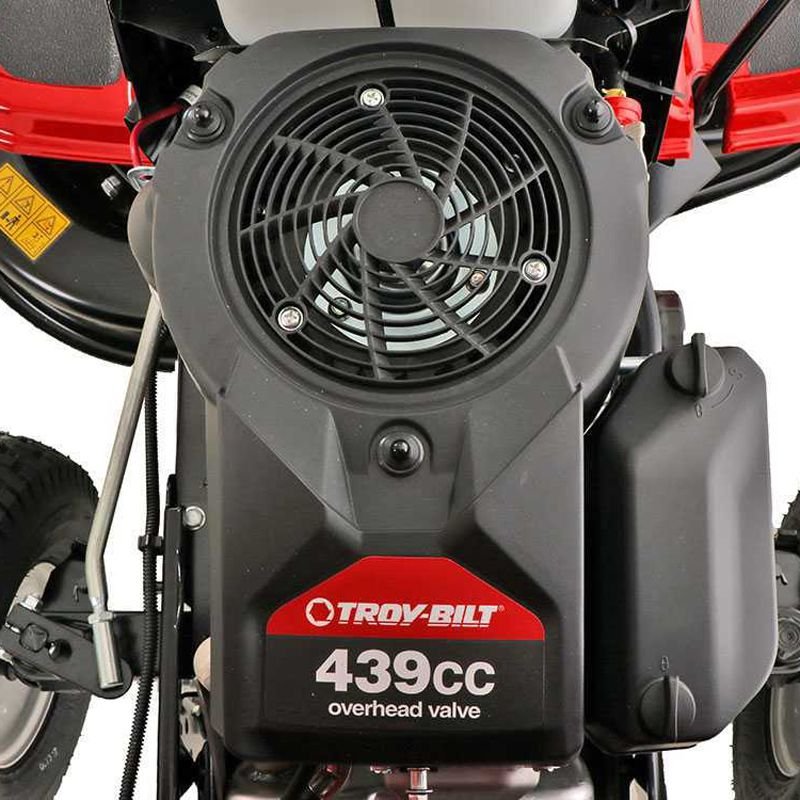 • Motor de gasolina Troy-Bilt de 4 tiempos, monocilíndrico, 439 cc, 7,5 kW, 14 Hp, potente, confiable y resistente, capaz de trabajar intensamente con un consumo de combustible y emisiones nocivas muy reducidos.