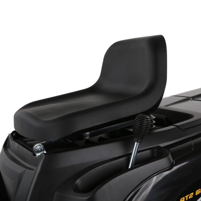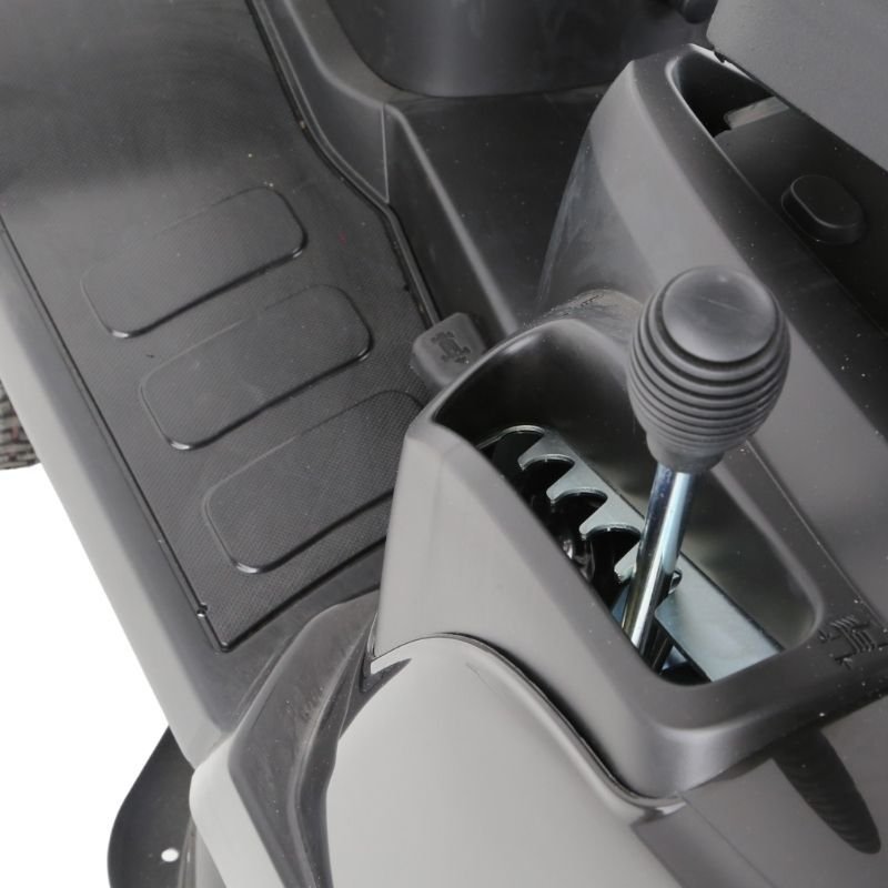 - Ruedas delanteras 11×4.00-4 «, ruedas traseras 13×5.00-6″ con forma de banda de rodamiento para no dañar el césped cubierto de hierba – radio de giro 155 cm.