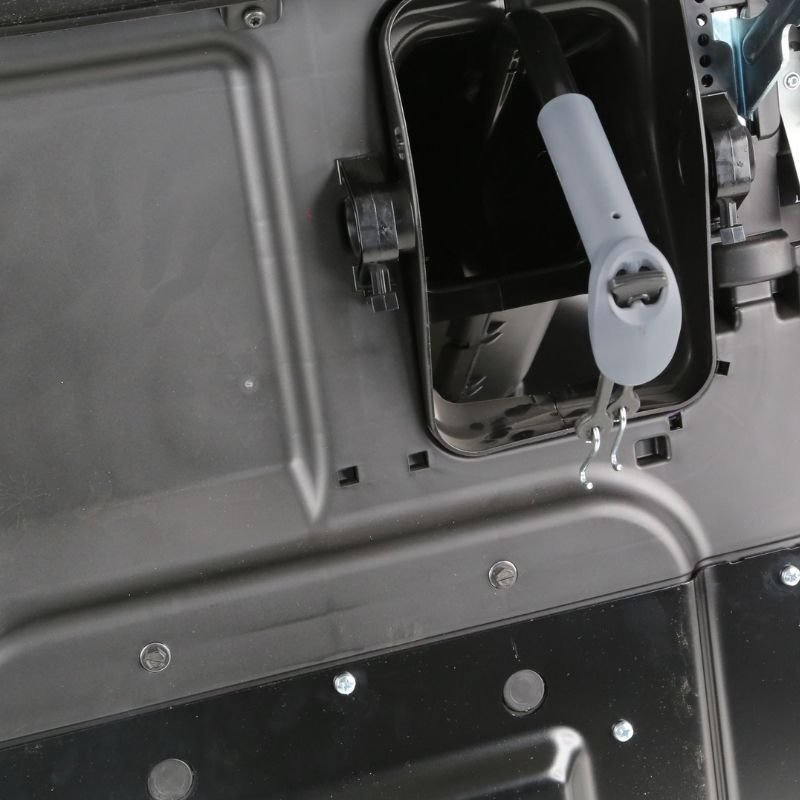 - Sistema de vaciado manual de la canasta de recolección: simplemente agarre la manija ubicada en la parte superior de la canasta y retírela de los ganchos provistos