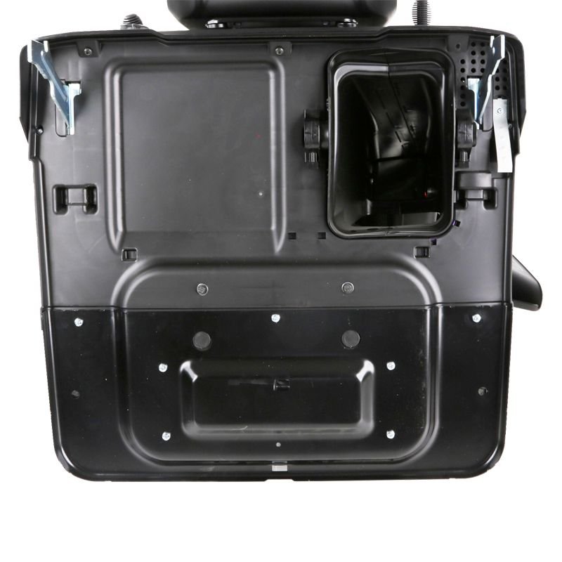 - Sistema de descarga lateral, posterior y de recolección con 150 lt y canasta tipo mulching que pulveriza el césped cortado y lo libera en el suelo como fertilizante natural.